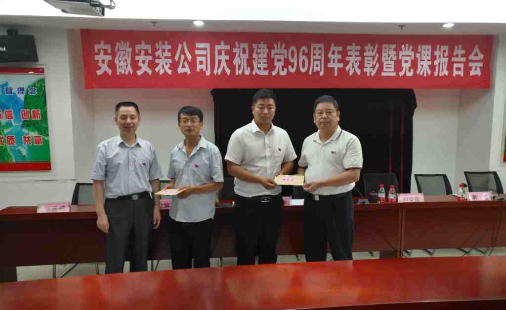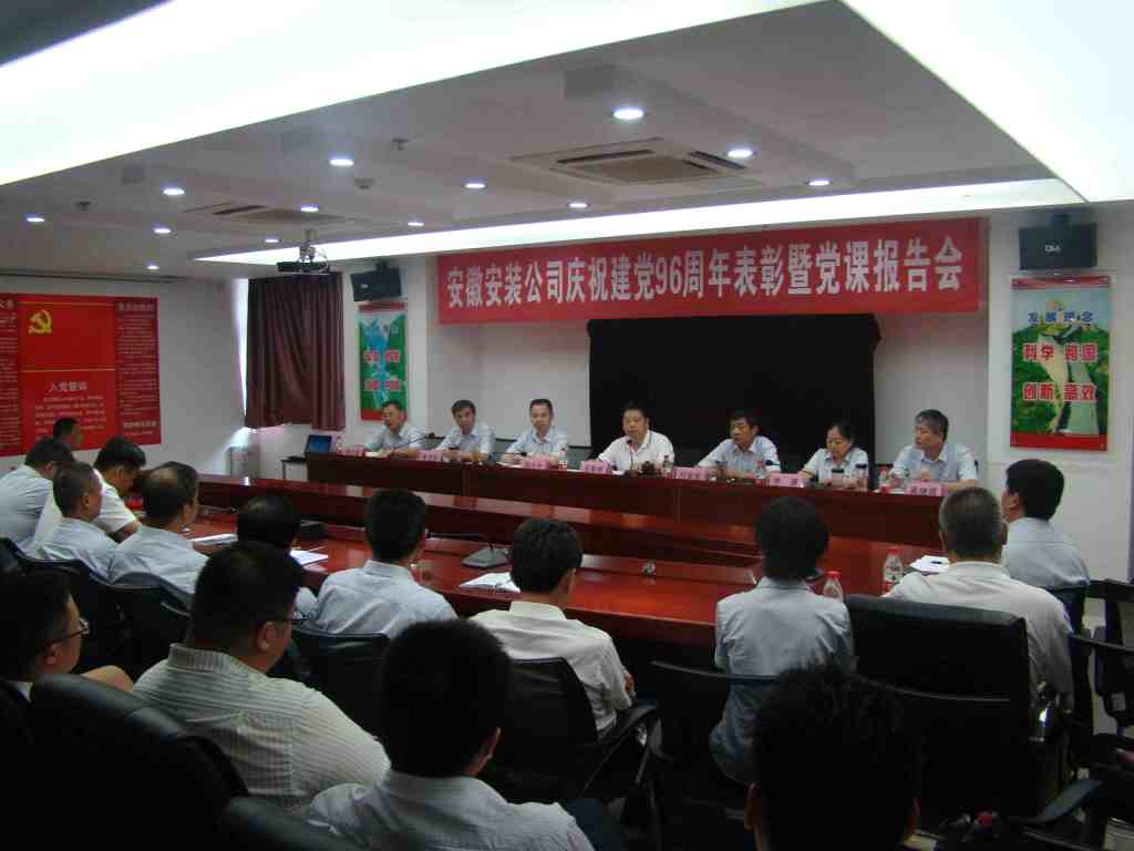 6月29日下午,安徽安裝公司召開慶祝建黨96周年表彰大會(huì)暨“七一”專題黨課活動(dòng),公司領(lǐng)導(dǎo)班子、在肥在崗黨員、入黨積極分子以及受表彰的先進(jìn)集體、先進(jìn)個(gè)人等60余人參加了會(huì)議。會(huì)議由公司董事長、總經(jīng)理、黨委副書記王軍邦主持。