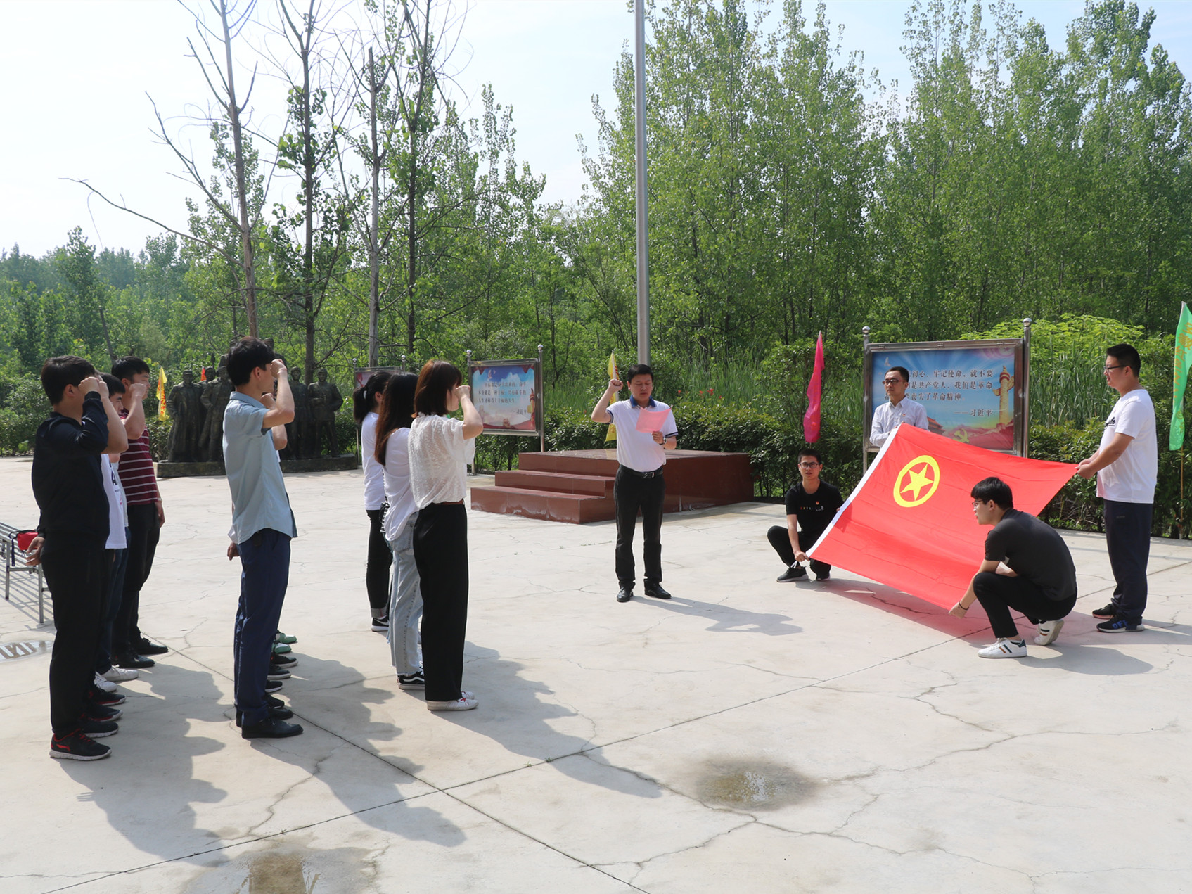 所有團員首先在安徽安裝團委書記王偉的帶領下,面對團旗,重溫入團誓詞。