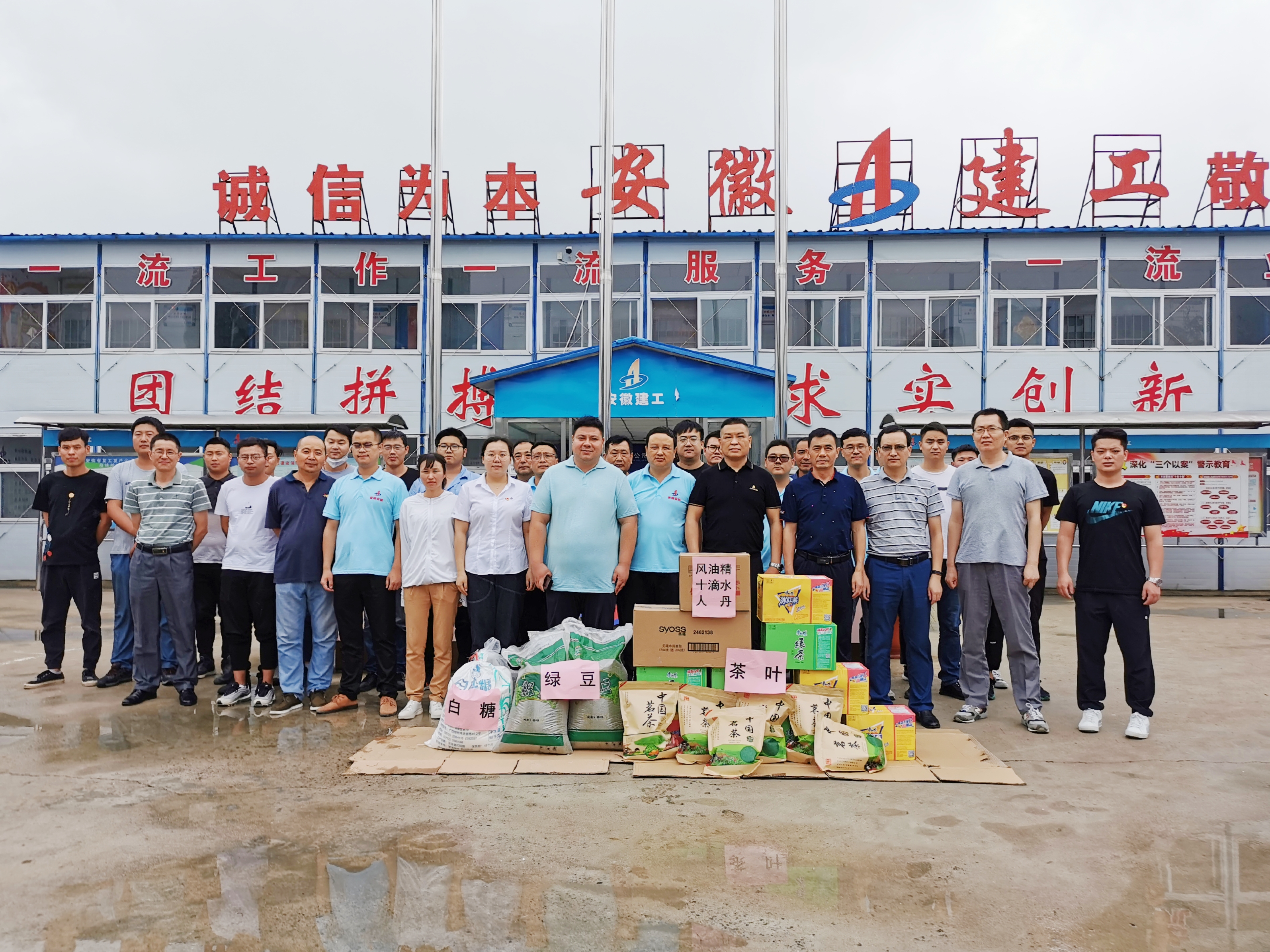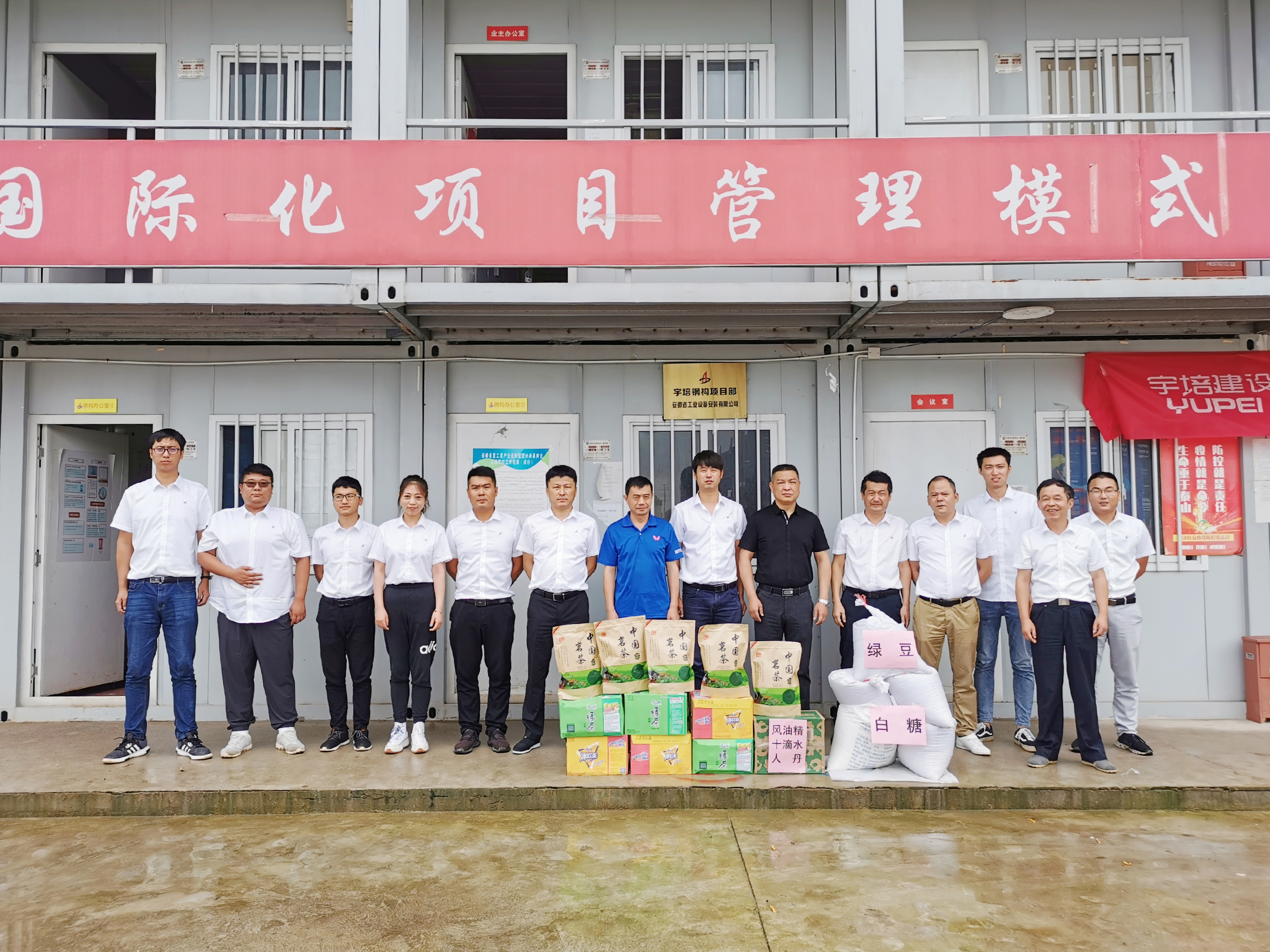 7月17日上午,公司領導走訪慰問了合肥分公司蕪湖宇培鋼結構項目部,為高溫天氣堅守在工作一線的項目部員工帶來了夏日防暑的常用藥品及飲料、綠豆、白糖、茶葉等。要求項目部堅持以人為本,一定要做好常態化疫情防控、防暑降溫、雨期安全工作,尤其是高溫、大風等極端天氣更要精心部署,合理安排作業內容,避開高溫時段施工,每日班前做好員工精神狀態確認,安全提醒到位,確保高溫季節一線職工安全度暑。