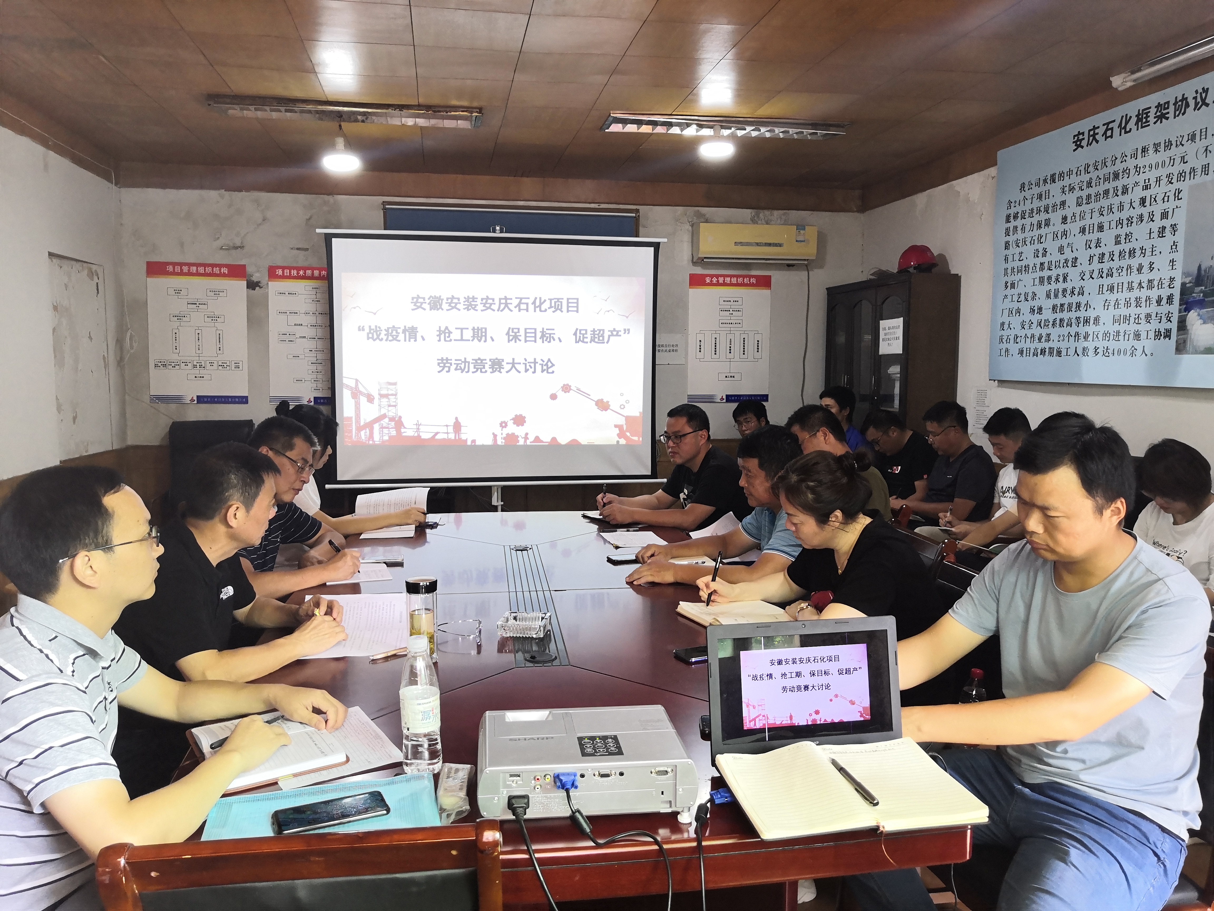 為認(rèn)真貫徹集團(tuán)公司“戰(zhàn)疫情、搶工期、保目標(biāo)、促超產(chǎn)”勞動(dòng)競(jìng)賽活動(dòng)精神,8月20日上午,安徽安裝公司圍繞“不能按時(shí)交工為恥辱”的履約意識(shí),在安慶石化項(xiàng)目部會(huì)議室組織開(kāi)展“戰(zhàn)疫情、搶工期、保目標(biāo)、促超產(chǎn)”主題大討論活動(dòng)。公司紀(jì)委書(shū)記、工會(huì)主席李寬旭,總會(huì)計(jì)師張?jiān)螅鞠嚓P(guān)部門(mén)負(fù)責(zé)人,安慶分公司領(lǐng)導(dǎo)班子成員,項(xiàng)目經(jīng)理、技術(shù)負(fù)責(zé)人等共20余人參加會(huì)議,會(huì)議由李寬旭主持。