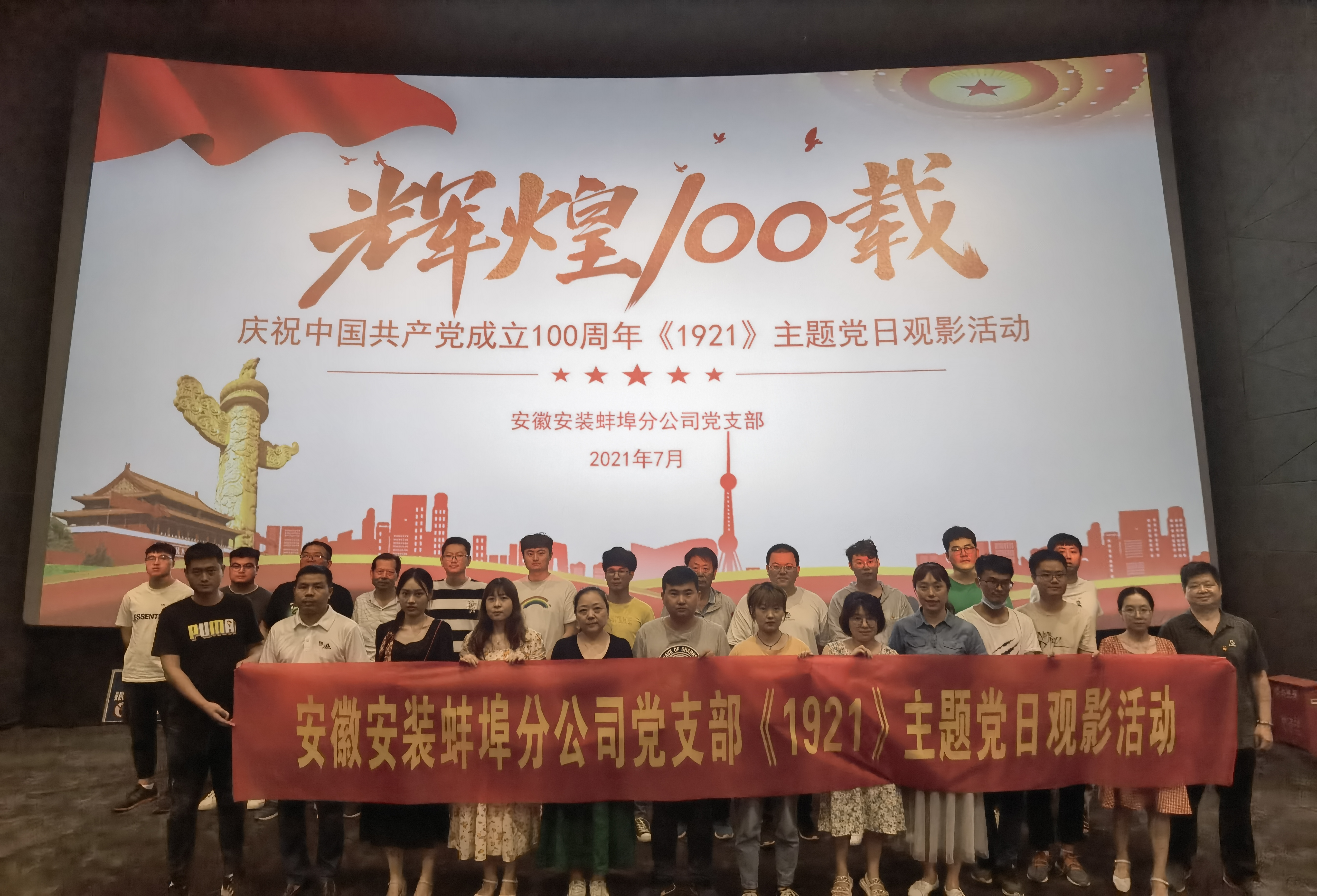 在慶祝中國共產黨成立百年之際,為進一步推進黨史學習教育,堅定理想信念,7月2日下午,蚌埠分公司黨支部組織支部黨員、分公司機關及部分項目員工開展了開展《1921》主題黨日觀影活動。