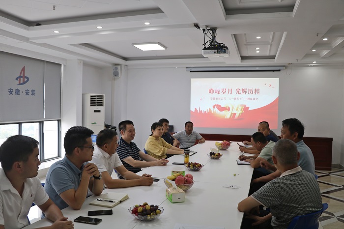 2021年8月1日是中國人民解放軍建軍94周年,8月2日,安徽安裝公司組織召開了“八一”建軍節(jié)主題座談會。座談會由公司工會副主席、人力資源部經(jīng)理王敏主持,黨委書記、董事長胡六中出席,10名公司在職的退伍軍人參加了座談會。