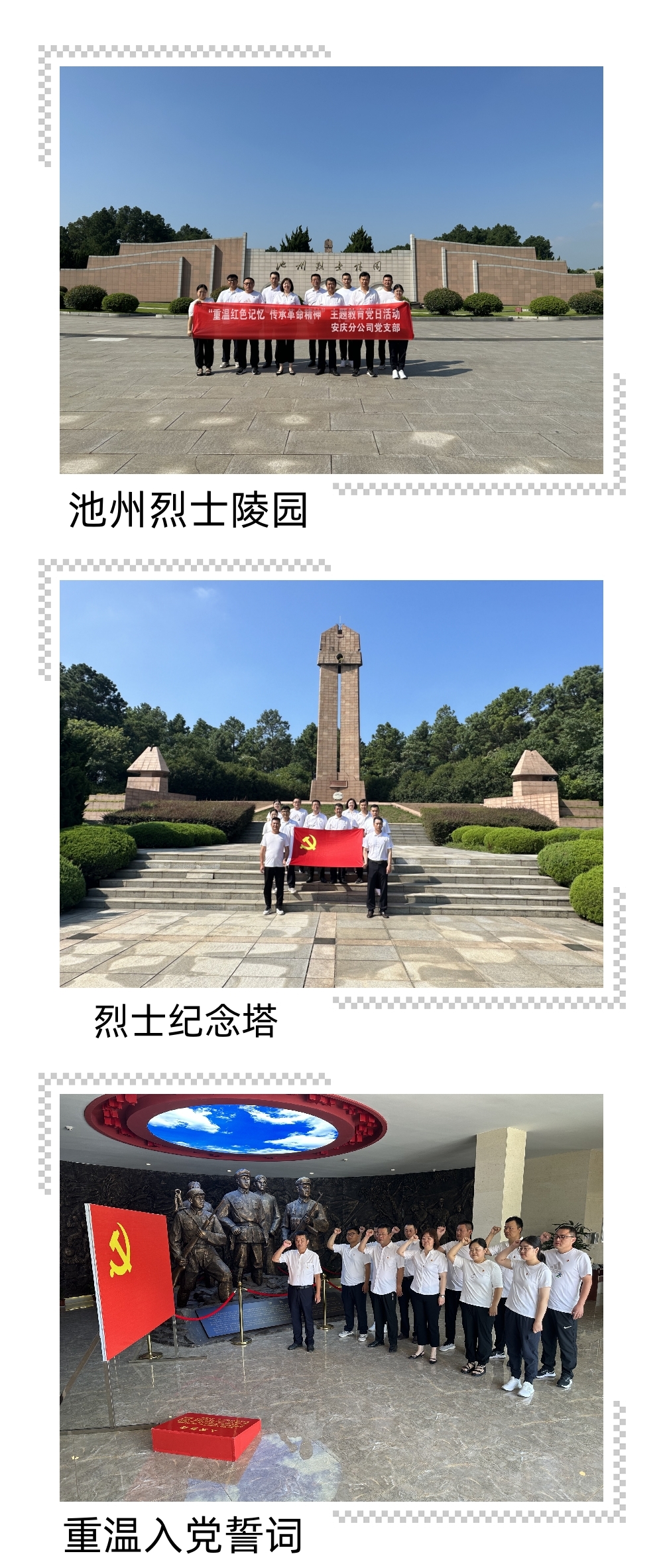 8月19日上午,安慶分公司黨支部赴池州烈士陵園開展主題教育活動,深切緬懷革命先烈,堅定傳承紅色信仰。