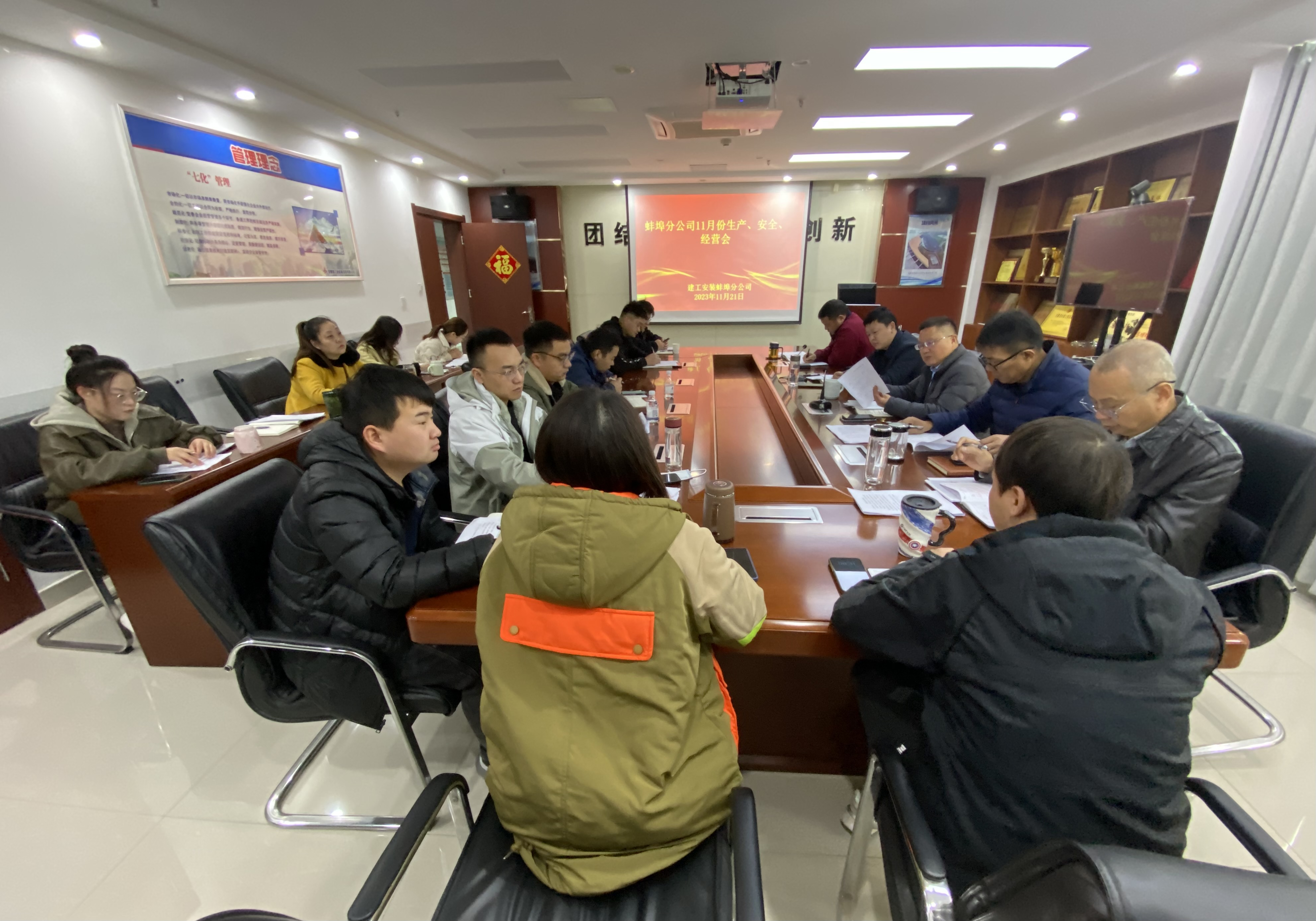 11月21日,蚌埠分公司組織召開11月份生產經營會,分公司領導班子成員、所屬各項目部、機關各部門負責人及工程管理部全體員工參加會議,會議由分公司副經理郭洋主持。