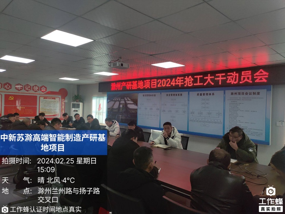 中新蘇滁高端智能制造產研基地項目部多措并舉,一手抓安全、一手抓復工,切實保障項目生產推進平穩有序。通過召開復工復產專題動員會,引導職工迅速收心歸位、進入狀態;開展節后安全隱患大排查,通過自查自糾,排除各施工點安全隱患。