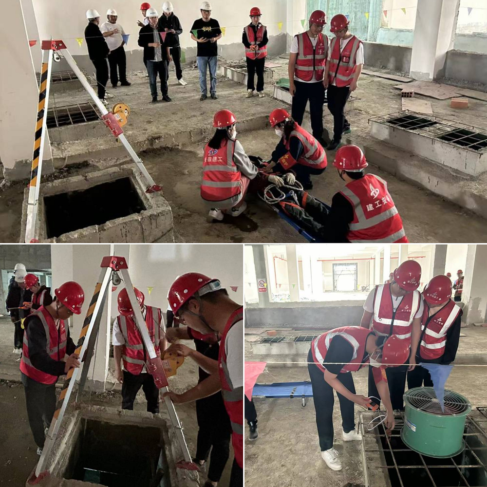 為進一步強化有限空間作業防范意識,預防發生缺氧窒息、中毒等生產安全事故,提高有限空間應急處置和救援能力,4月29日下午建工安裝蚌埠污水處理站項目聯合安徽水利開展有限空間作業事故應急演練。建設、監理單位相關負責人參加觀摩此次演練。