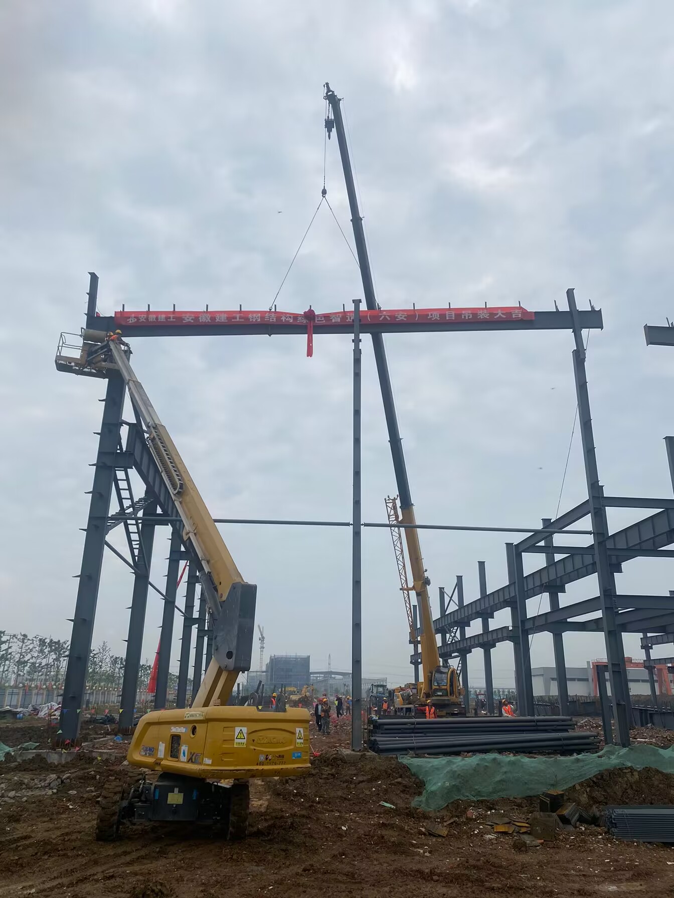 【提速奮戰二季度】建工安裝安徽建工鋼結構綠色智造(六安)項目順利開始“大跨度 屋面梁吊裝作業”