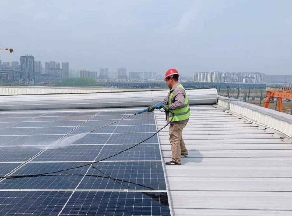 “灰層遮擋了光伏板的主體,而此刻我手中的高壓水槍,猶如一把犀利的掃帚,能夠快速清除板面的泥土和污垢,既節(jié)省了人力和時間,又進(jìn)一步提高了發(fā)電效益。清洗后的光伏板,仿佛獲得了源源不斷的動力,不知疲倦地輸出著清潔能源。”