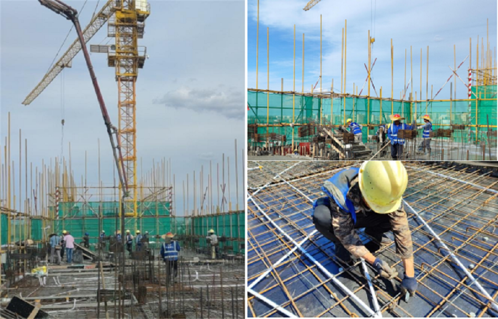 新開樓棟A5#基礎回填完成,一層外架搭設完成,剪力墻模版支撐完成,A11#一層混凝土澆筑完成,A25#五層頂板鋼筋驗收完成,具備澆筑條件,A26#五層剪力墻鋼筋綁扎完成,驗收合格,綜合樓二層澆筑完成。