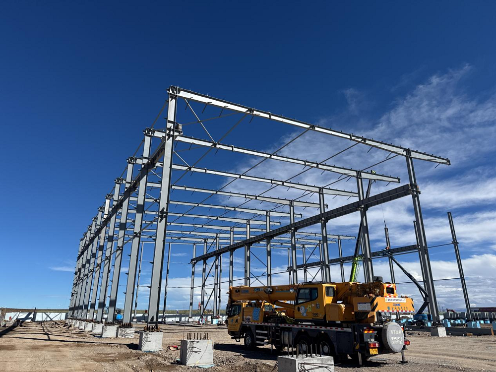 青海地區在10月便會進入冬季施工階段,屆時項目即將面臨寒潮的不利影響。目前,項目部現正搶抓施工“窗口期”,確保9月底完成配電房二層、2000噸鋼結構安裝這一關鍵節點任務。