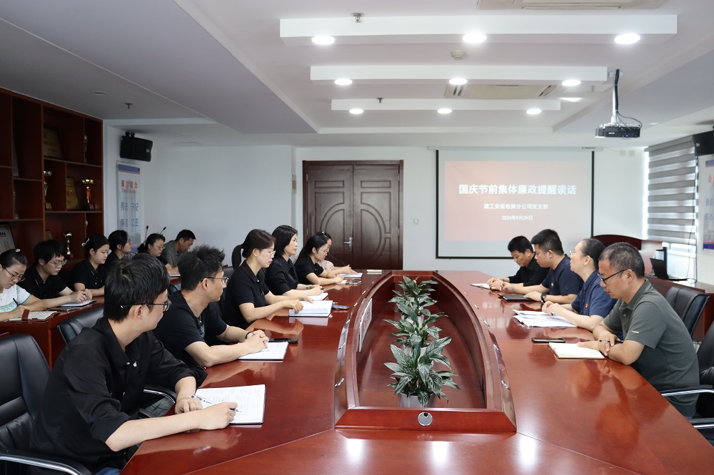 “國慶”臨近,為進一步嚴明紀律要求,積極營造風清氣正的節日氛圍, 建工安裝電梯分公司黨支部于9月29日上午開展節前集體廉政提醒談話。
