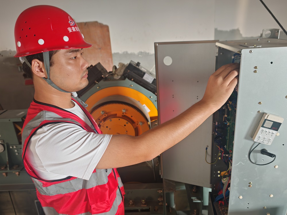 淮上明居東區新建工程項目,施工員,朱孫兵,正在檢查電梯安全制動系統。奮力前行、努力工作,祝福祖國七十五周年華誕生日快樂,我在項目堅守,我為祖國慶生。