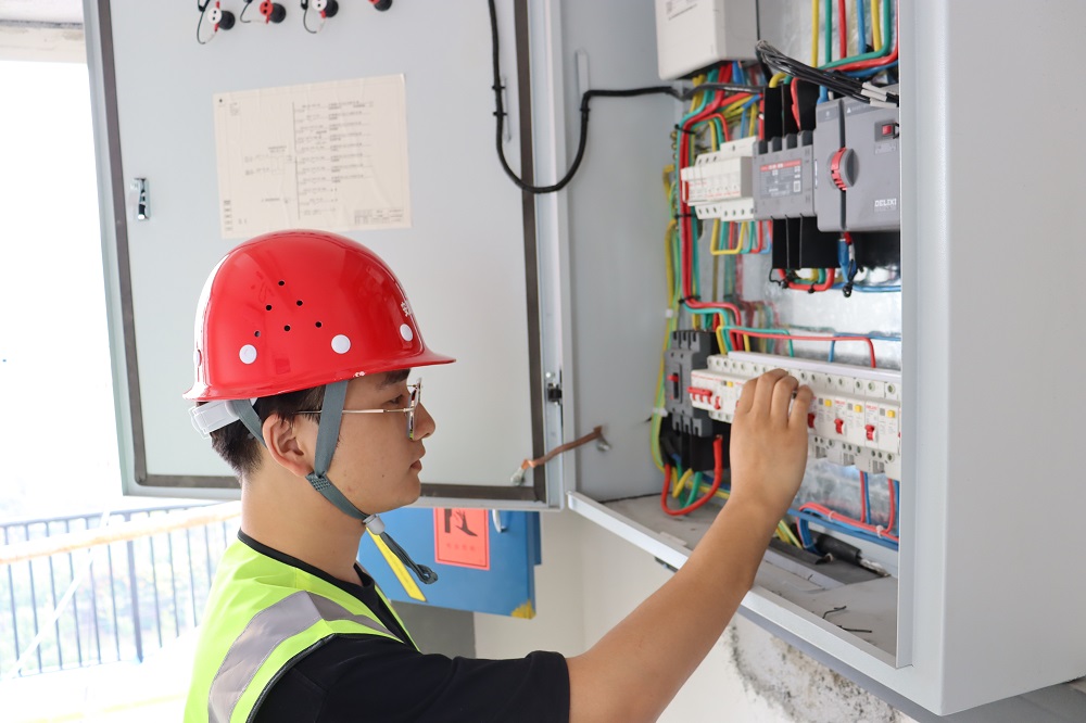 中國蚌埠傳感谷(寧波蚌埠微電子產業園)項目,技術員,鄭繼昊,正在檢查電梯控制柜操作系統。奮進正當時,我為祖國建設出力,以實際行動建設精品工程。我在項目堅守,我為祖國慶生。