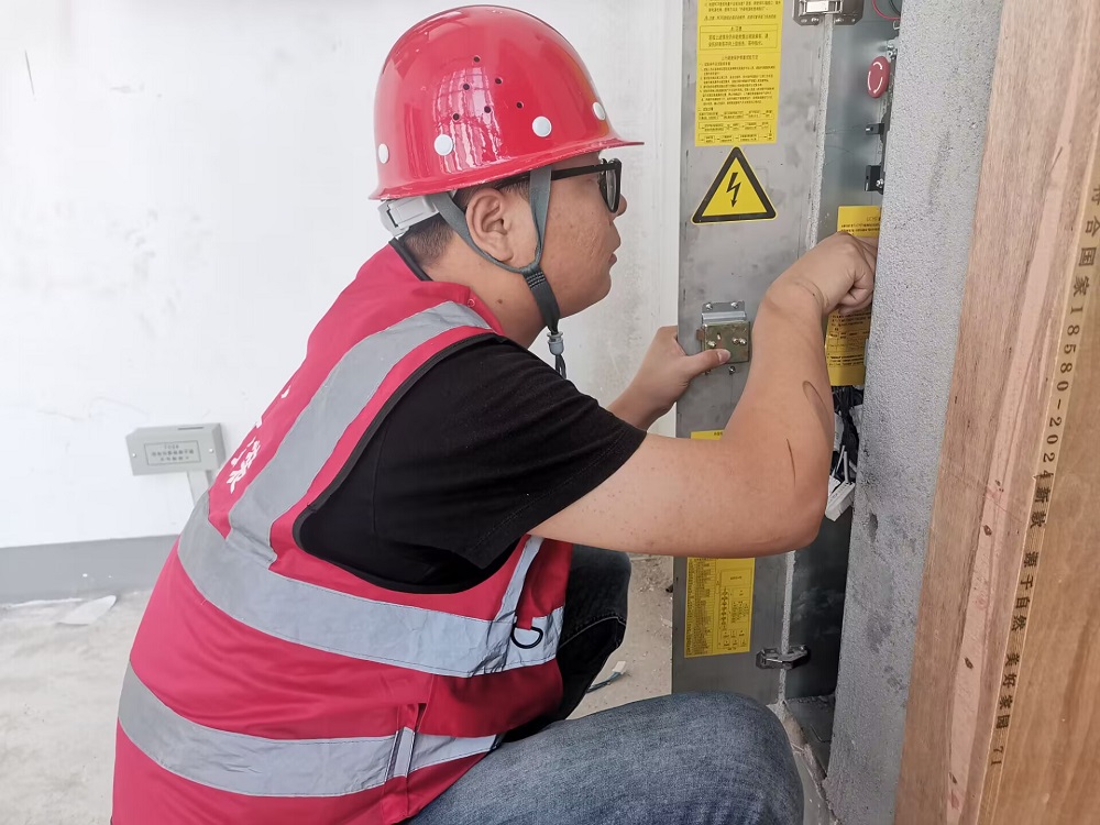 合肥市包河區衛崗王衛片區城市更新項目,技術員,朱潤龍,正在機房檢查配電箱各項開關,奮斗路正長,行者方致遠,我在建工安裝持續秉持向陽而生的勁頭,為祖國繁榮昌盛和企業高質量發展貢獻自己的力量。我在項目堅守,我為祖國慶生。