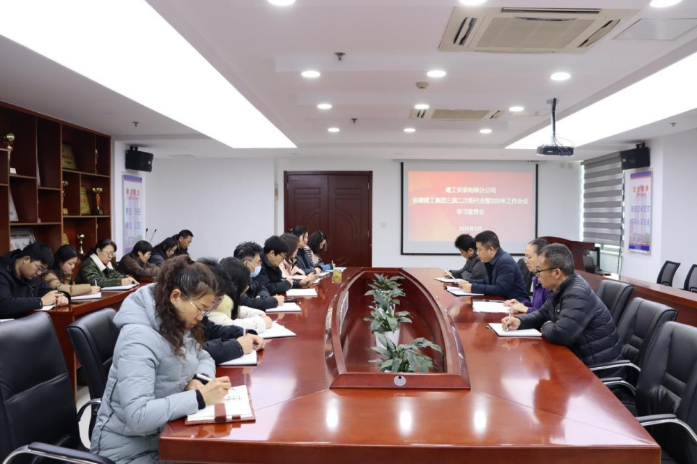 2月13日上午,建工安裝電梯分公司召開專題會議,集中傳達學習集團三屆二次職代會暨2025年工作會議精神,分公司在肥全體員工參會,會議由分公司黨支部書記、經(jīng)理夏國祥主持。