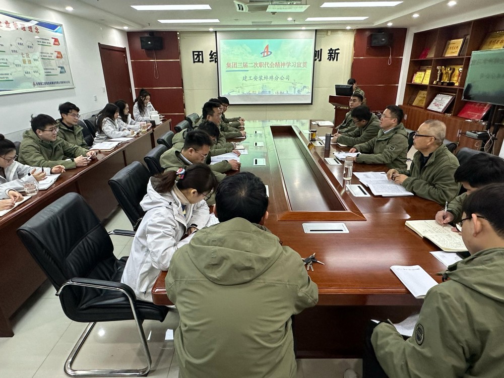 2月 13 日,建工安裝蚌埠分公司召開專題學習會,全面深入學習宣貫安徽建工集團三屆二次職代會會議精神。分公司班子成員、機關全體員工以及在蚌項目管理人員參會。會議由分公司黨支部書記、經理趙銘亮主持。