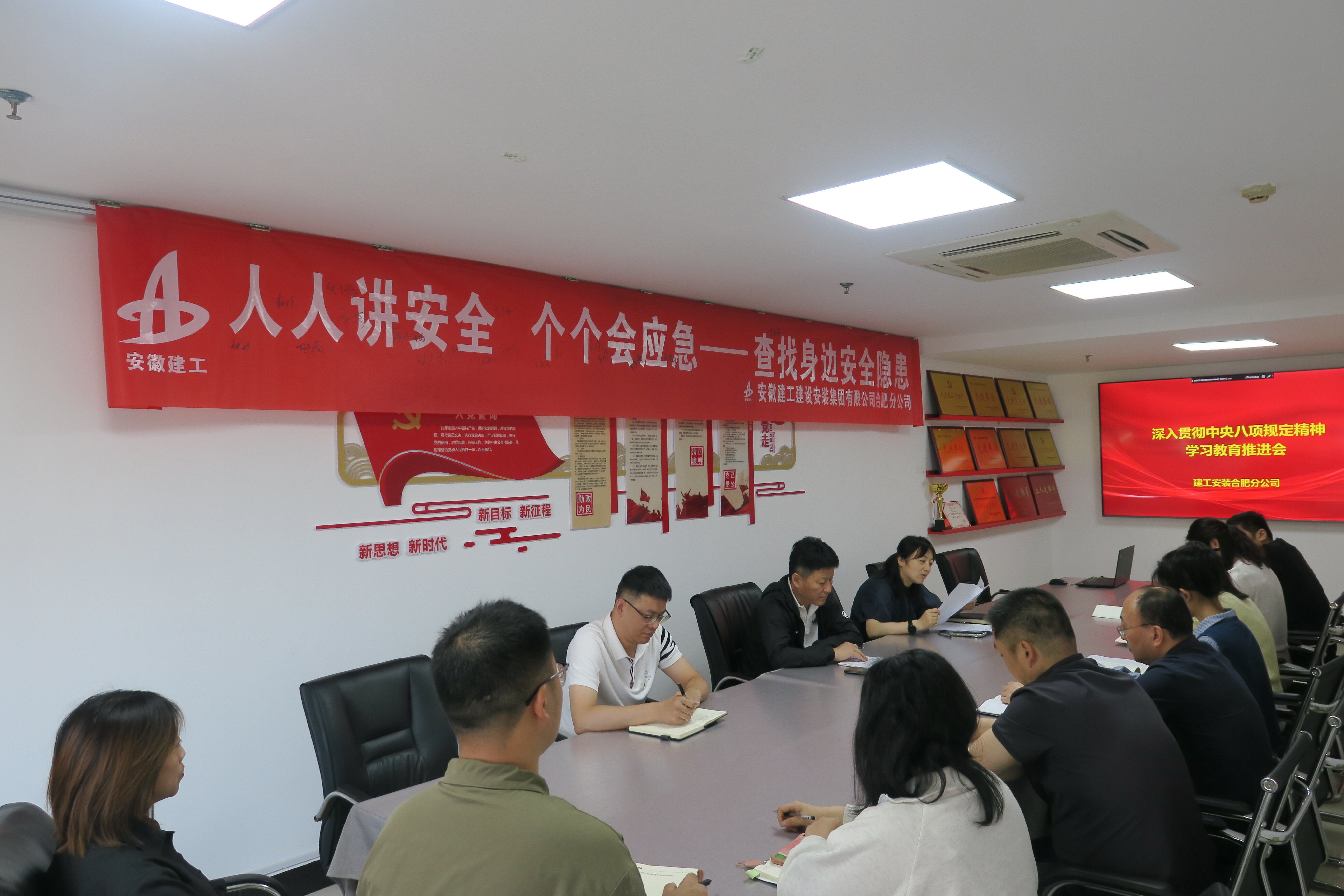 6月3日上午,建工安裝合肥分公司召開深入貫徹中央八項規定精神學習教育推進會,分公司領導班子、各部門負責人、各項目主要負責人、支部黨員參加會議。