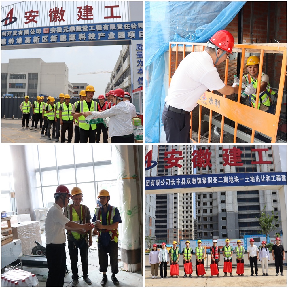 此次活動(dòng)由電梯公司領(lǐng)導(dǎo)班子成員帶隊(duì),先后深入蚌埠高新區(qū)新能源科技產(chǎn)業(yè)園EPC項(xiàng)目、長(zhǎng)豐縣雙墩鎮(zhèn)紫桐苑項(xiàng)目、匯金商務(wù)中心S1#樓室內(nèi)裝修設(shè)計(jì)施工項(xiàng)目、潭沖河家園E地塊EPC總承包項(xiàng)目等多個(gè)電梯安裝施工現(xiàn)場(chǎng)進(jìn)行走訪(fǎng)慰問(wèn),感謝大家在高溫下堅(jiān)守崗位,并將礦泉水、綠茶、人丹、藿香正氣水、風(fēng)油精、毛巾等防暑降溫用品一一送到職工手中。每到一個(gè)項(xiàng)目,慰問(wèn)組都詳細(xì)了解項(xiàng)目進(jìn)展以及員工生產(chǎn)生活情況,認(rèn)真傾聽(tīng)一線(xiàn)員工的心聲,著重強(qiáng)調(diào)安全生產(chǎn)工作,叮囑項(xiàng)目部高溫天氣要做好防暑降溫措施,合理安排高溫工作時(shí)間,做好高溫下作業(yè)人員防護(hù),時(shí)刻把安全生產(chǎn)牢記于心,全力保障員工的健康和安全。