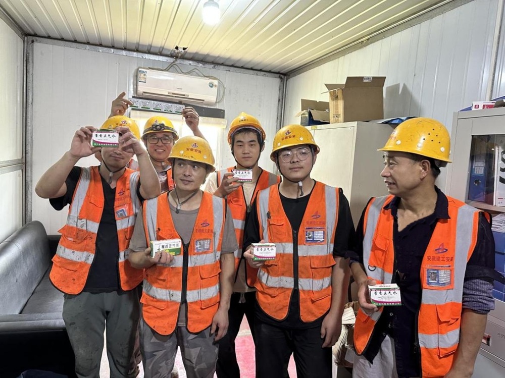 在作業點附近設置多個“清涼驛站”,現場發放防暑降溫藥品