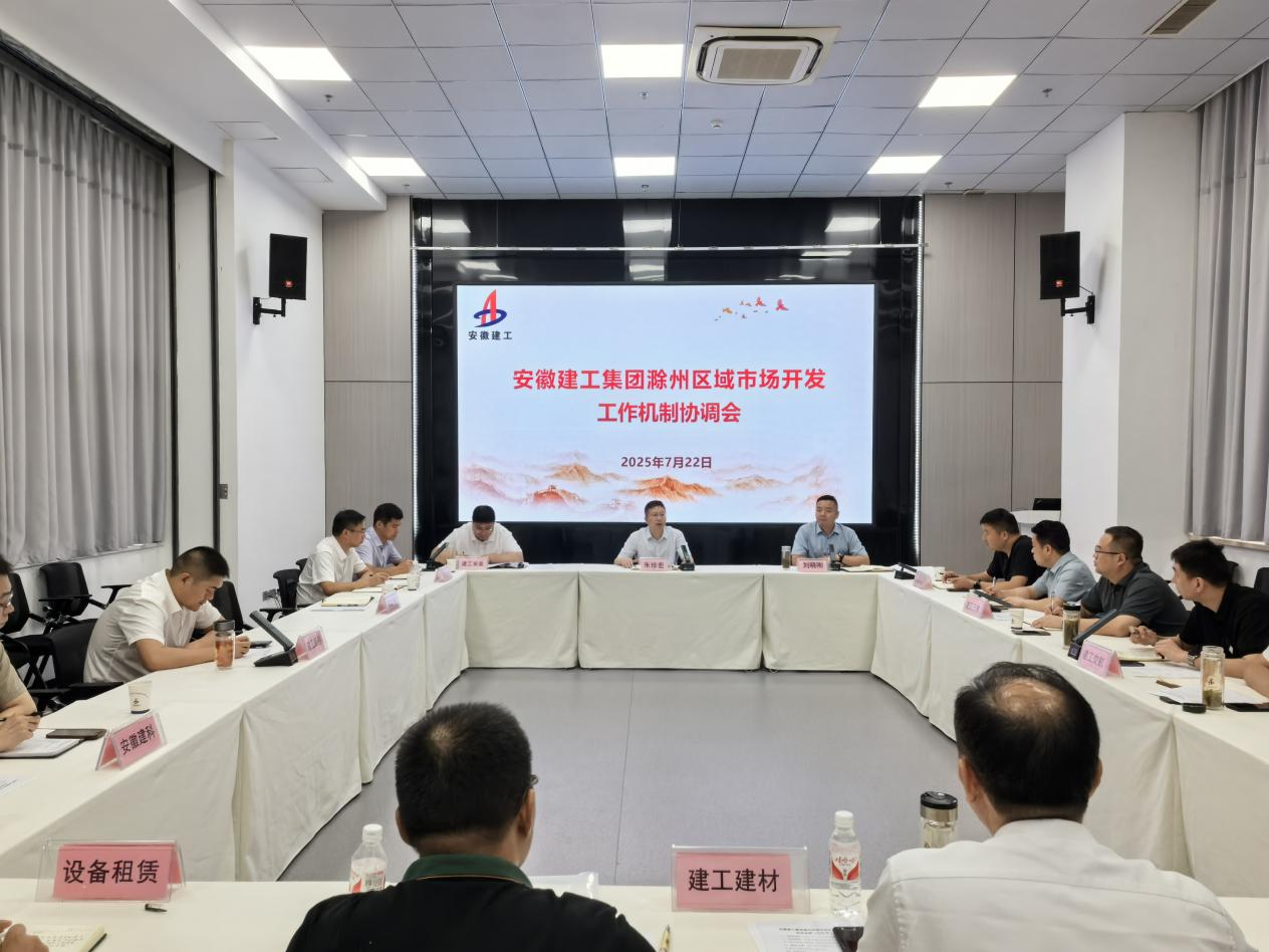 7月22日上午,安徽建工集團(tuán)滁州區(qū)域2025年7月份市場(chǎng)開發(fā)工作機(jī)制協(xié)調(diào)會(huì)在建工安裝第一會(huì)議室召開。建工安裝黨委書記、董事長朱珍宏出席會(huì)議,會(huì)議由建工安裝市場(chǎng)開發(fā)和投資部許杰主持。